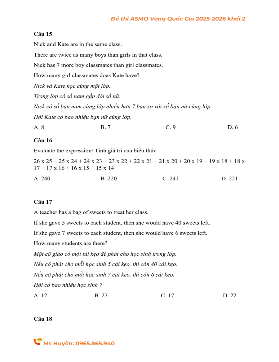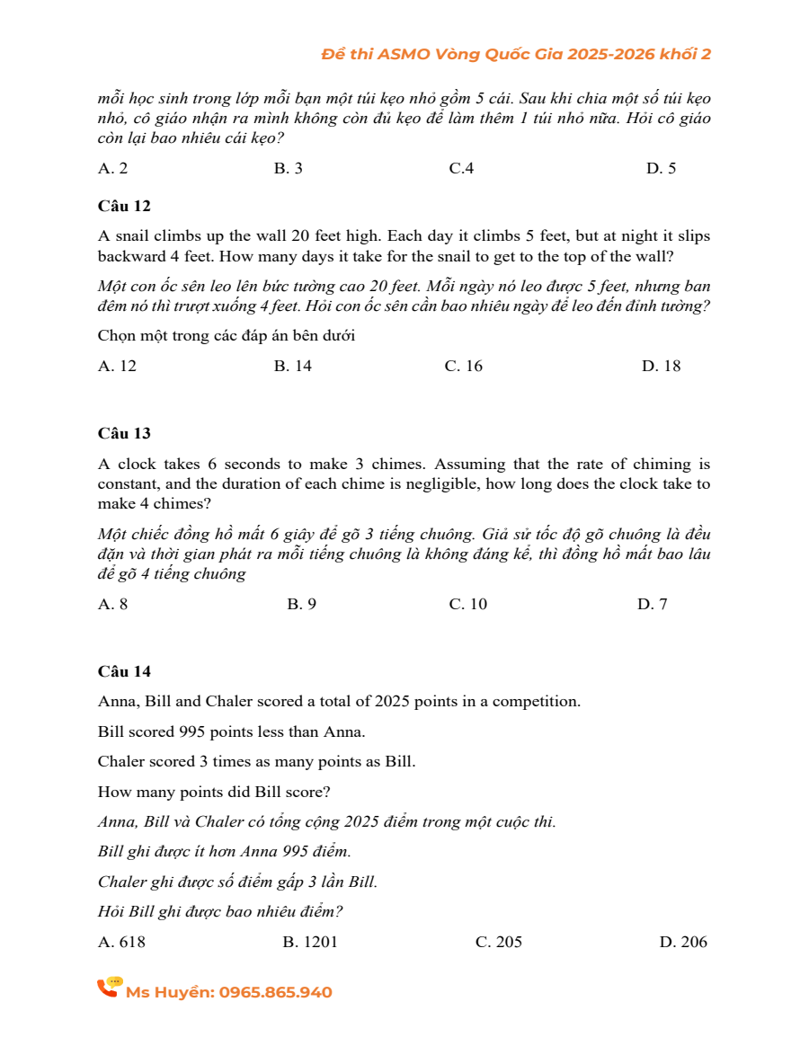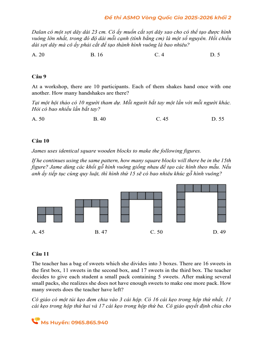 Đề thi ASMO Vòng Quốc Gia Lớp 2 Năm 2025-2026 (Kèm Đáp án)