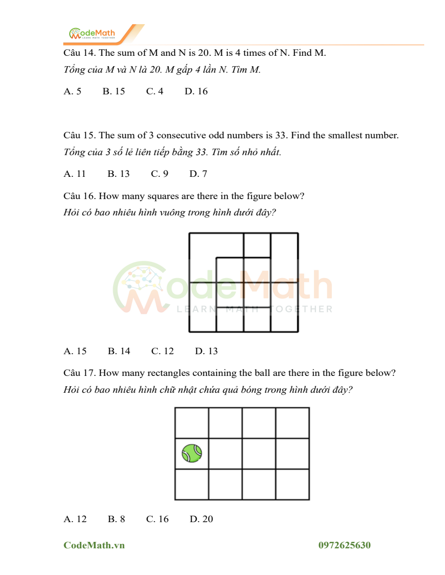 Đề thi Mocktest TIMO Khối 3 Vòng loại 2025 - 2026 kèm đáp án
