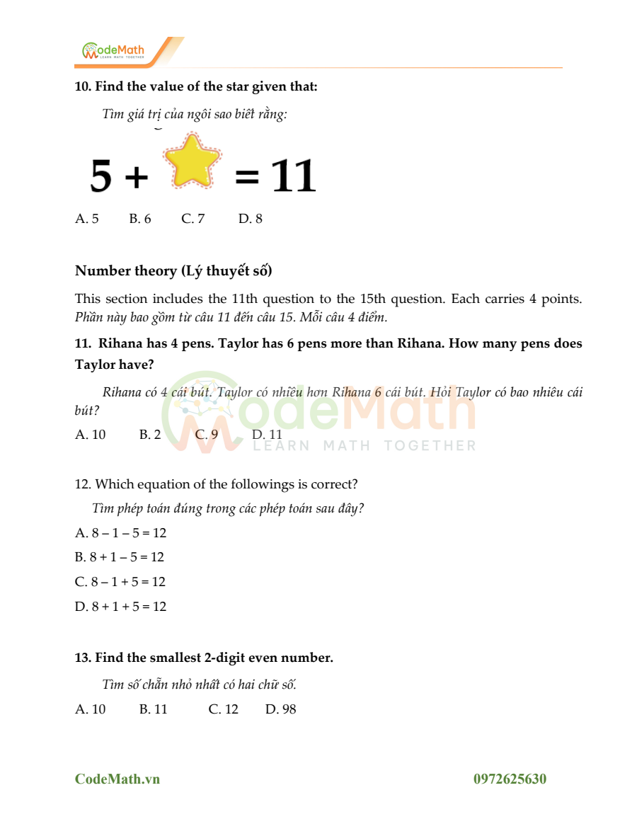Đề thi Mocktest TIMO Khối MN Vòng loại 2025 - 2026 kèm đáp án