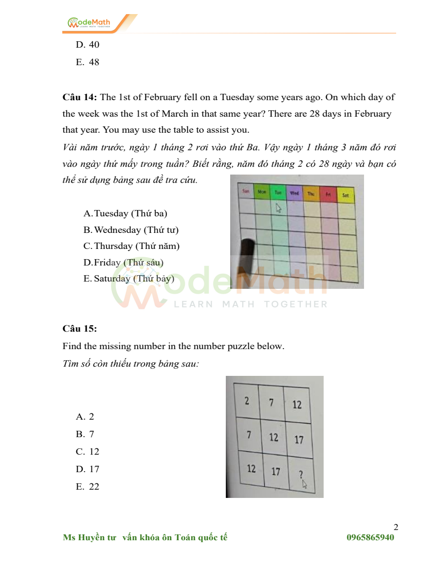 Đề thi thật SEAMO Vòng quốc gia 2025 - 2026 khối 1-2 (kèm đáp án)