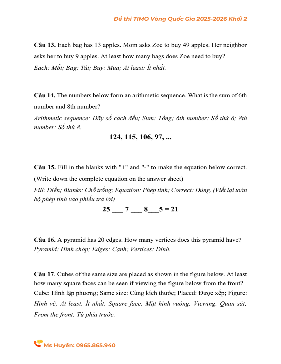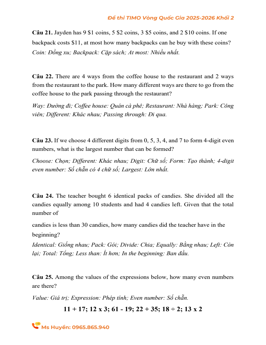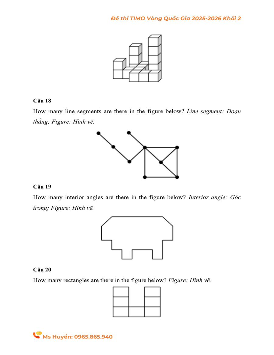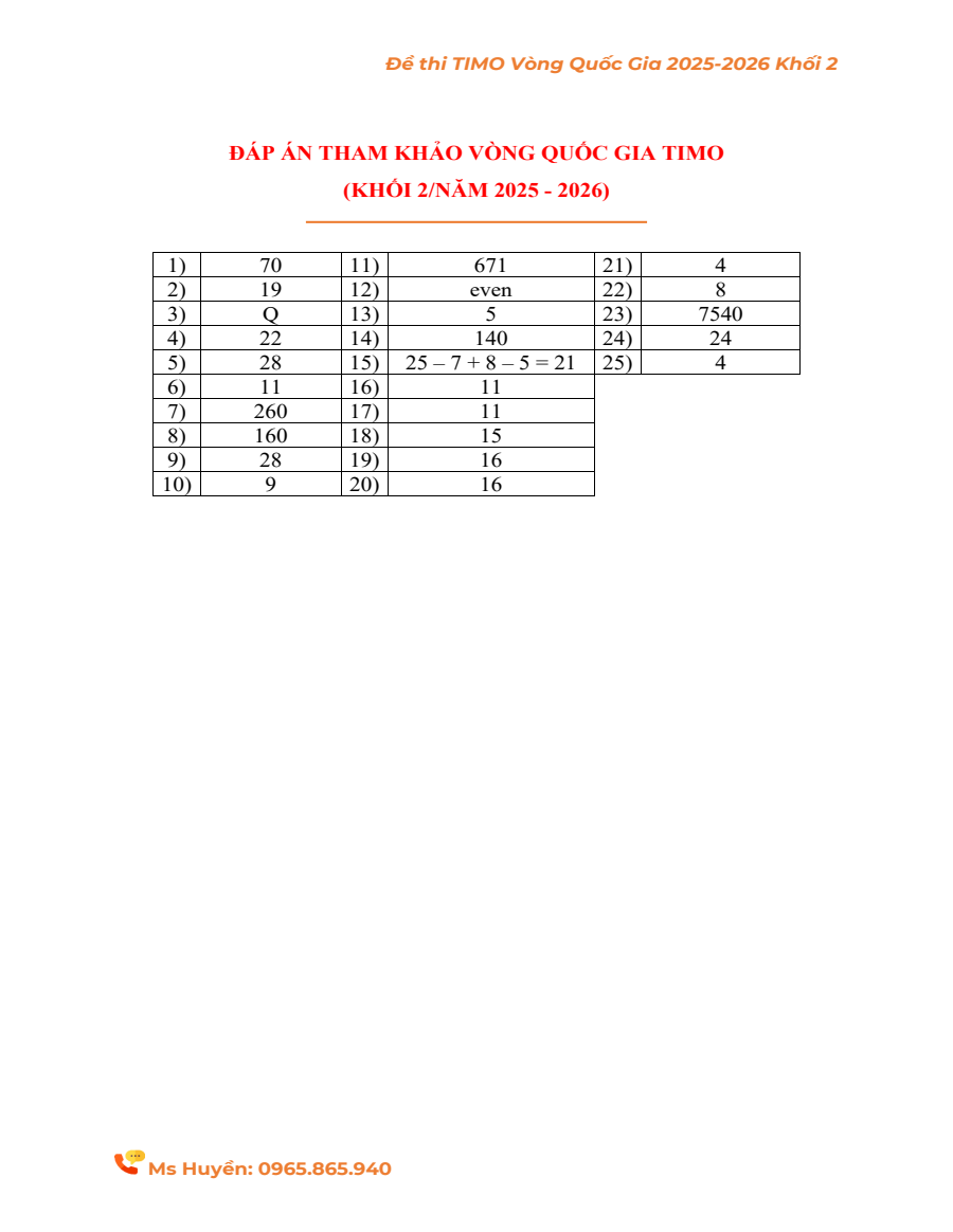 Đề thi thật Vòng Quốc gia TIMO khối 2 năm 2025 - 2026 (kèm đáp án)