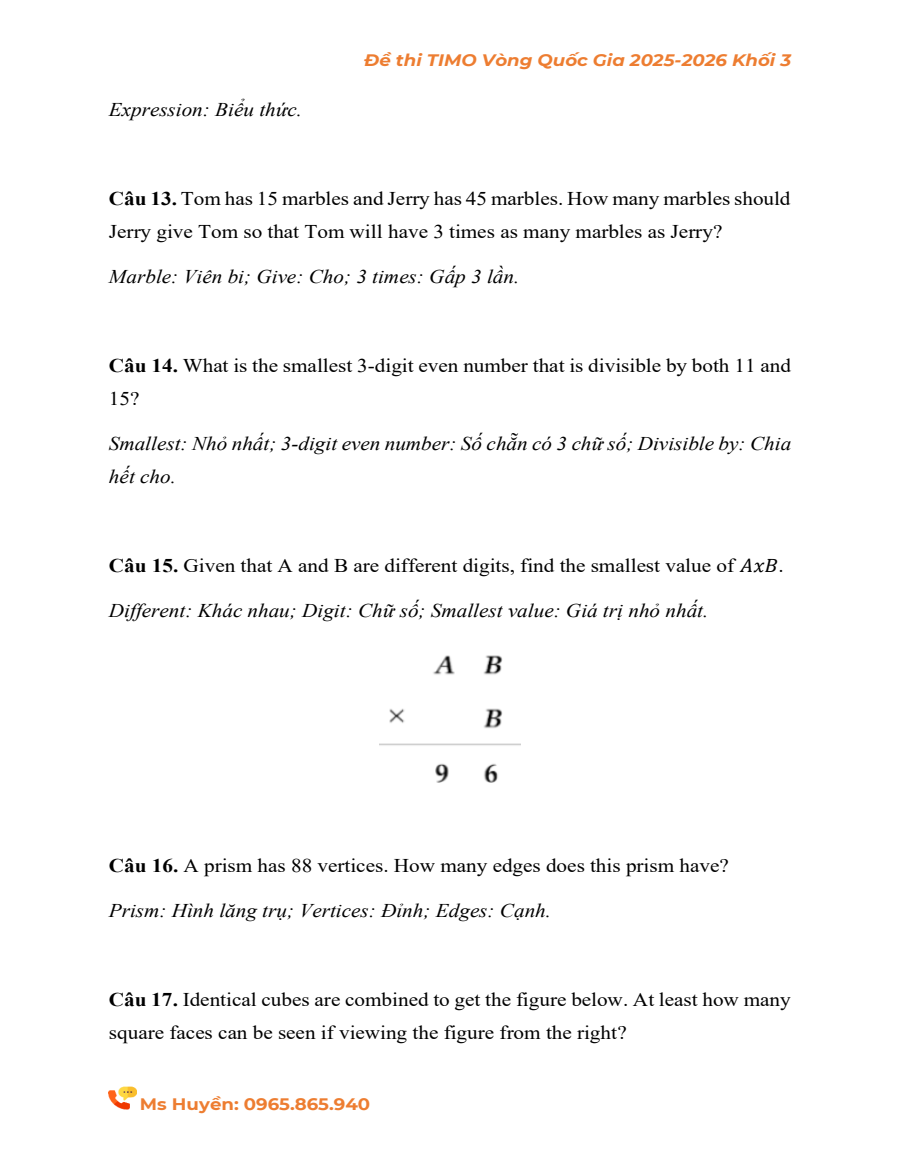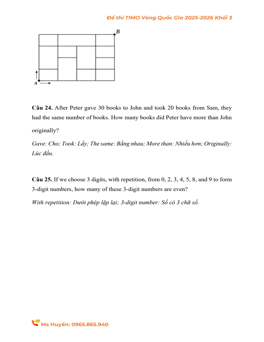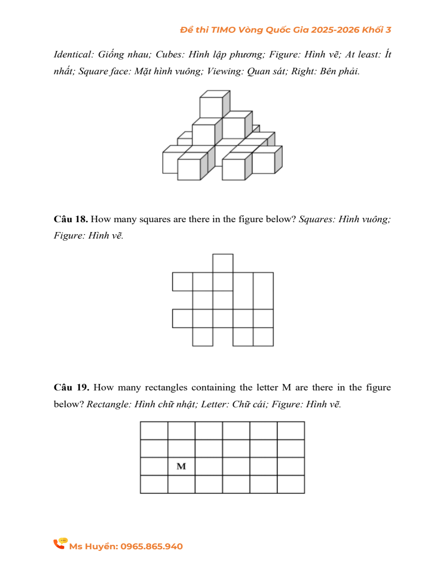 Đề thi thật Vòng Quốc gia TIMO khối 3 năm 2025 - 2026 (kèm đáp án)