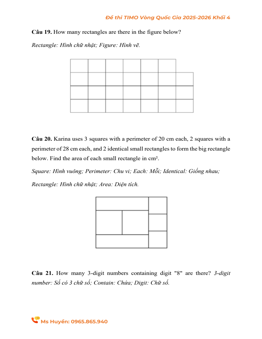Đề thi thật Vòng Quốc gia TIMO khối 4 năm 2025 - 2026 (kèm đáp án)