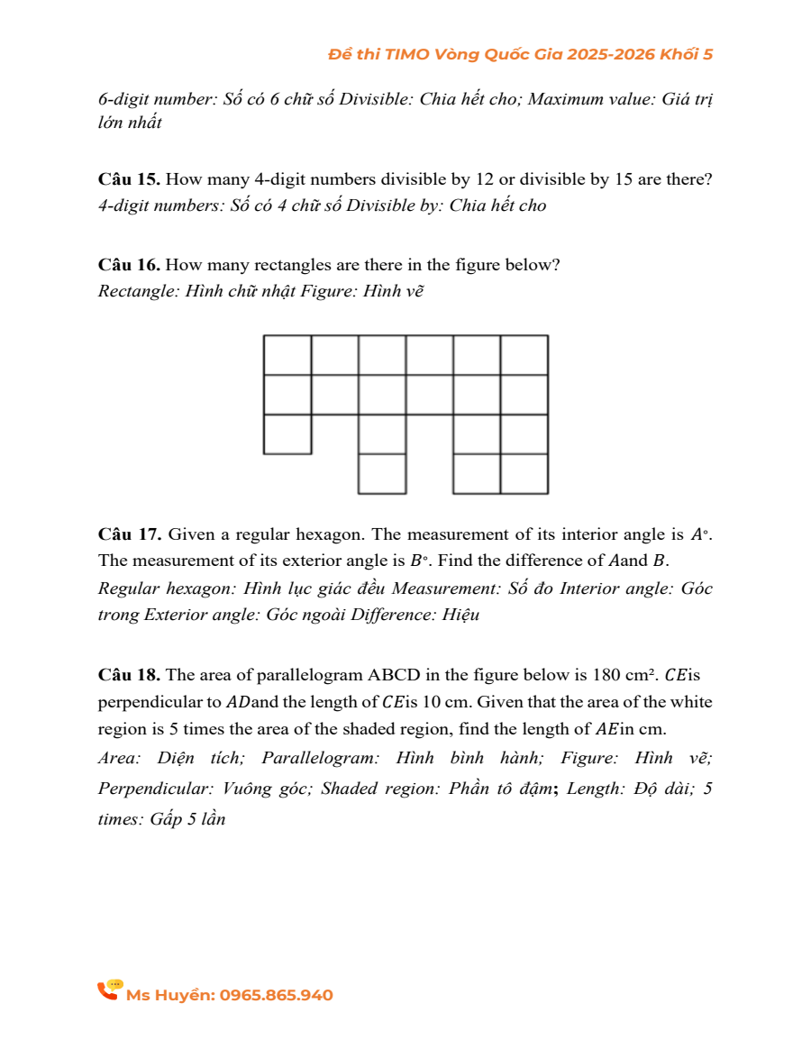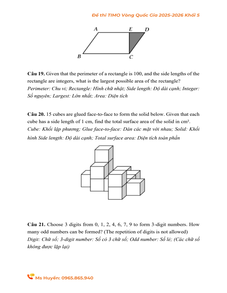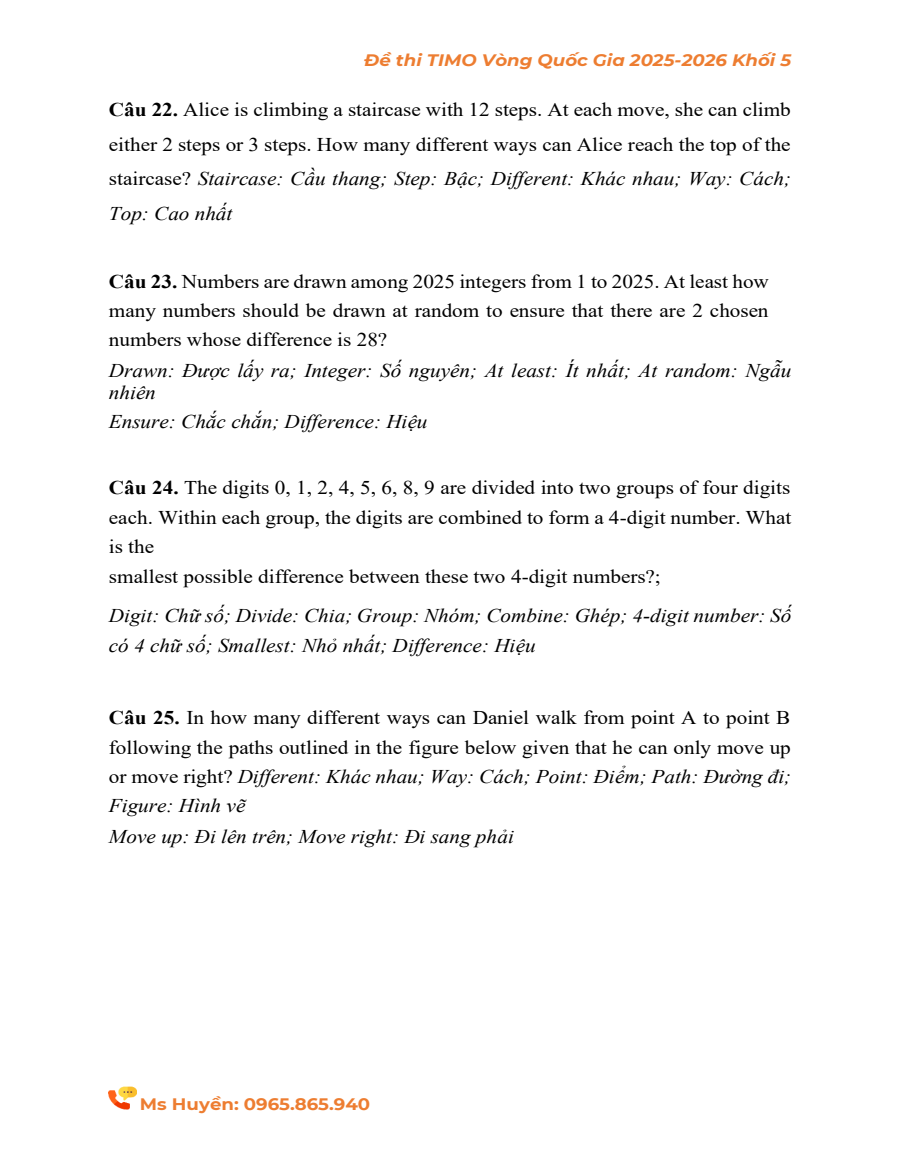 Đề thi thật Vòng Quốc gia TIMO khối 5 năm 2025 - 2026 (kèm đáp án)