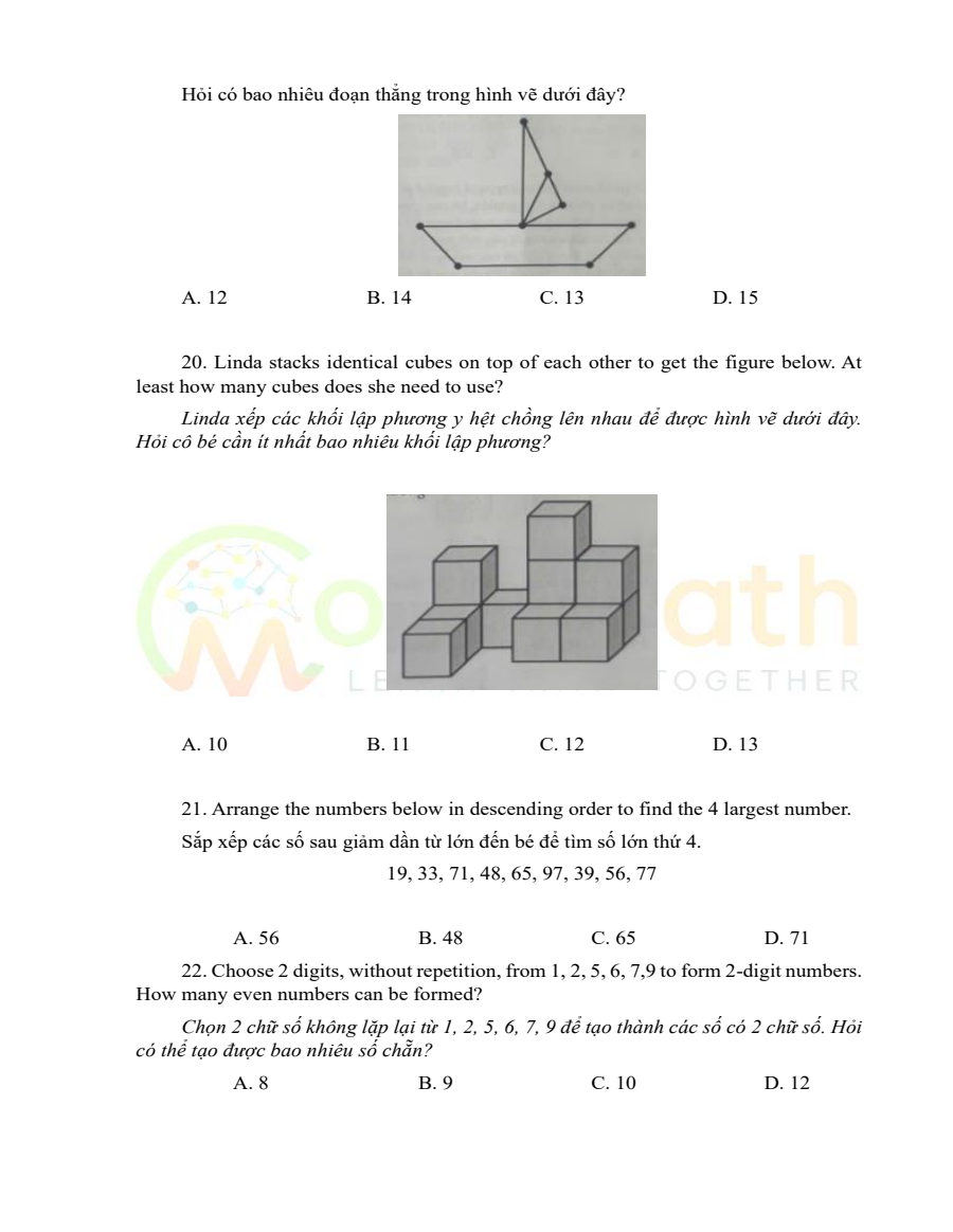 Lưu ý: Mức độ khó của các câu hỏi có thể khác nhau và phù hợp với trình độ của học sinh khối 2. Đề thi này mang tính chất tham khảo và có thể khác biệt so với đề thi chính thức.